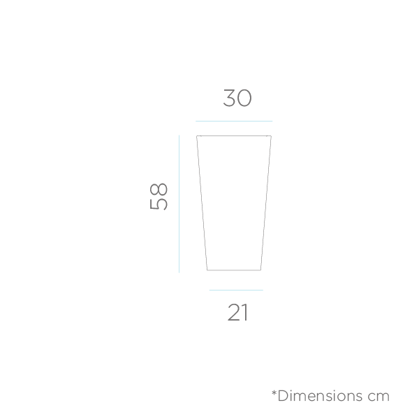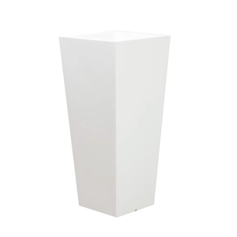 Maceta cuadrada para uso en interiores o exteriores, con protección anti UV, resistente a agentes atmosféricos. Disponible en color Blanco. Dimensiones de la maceta: Alto 59 cm / Ancho 30 cm / Profundidad 30 cm