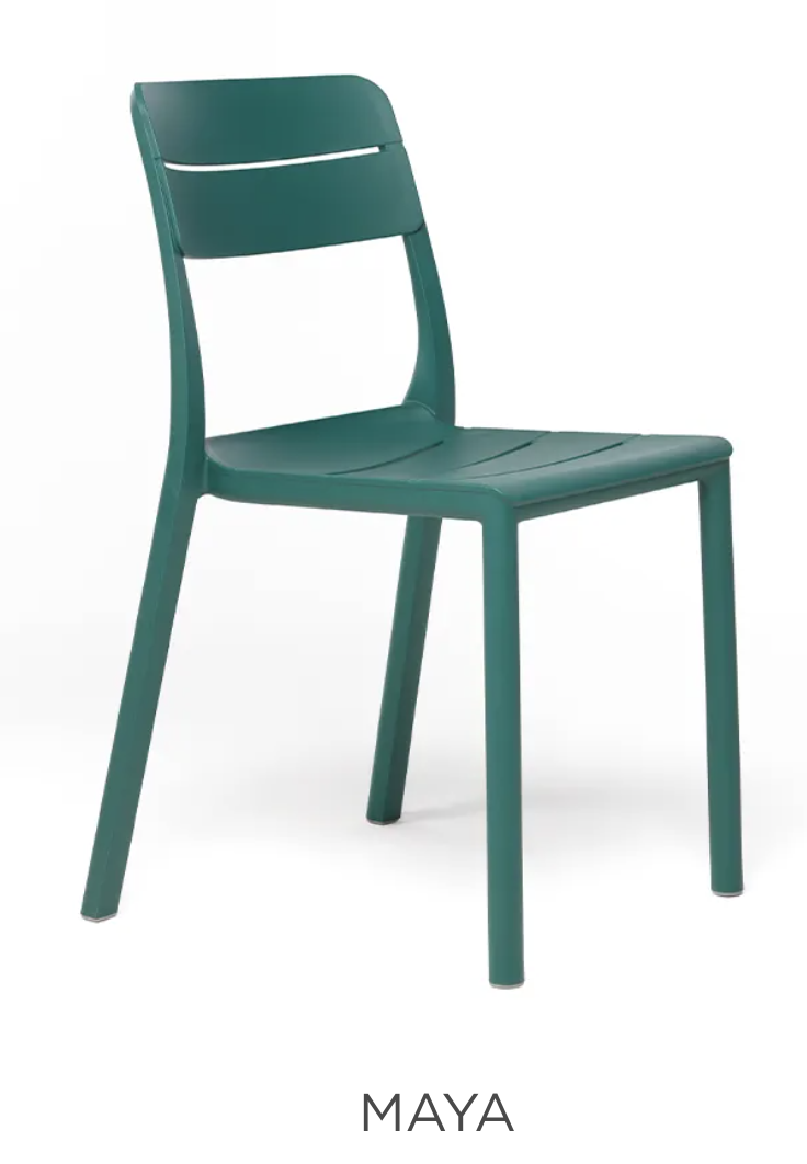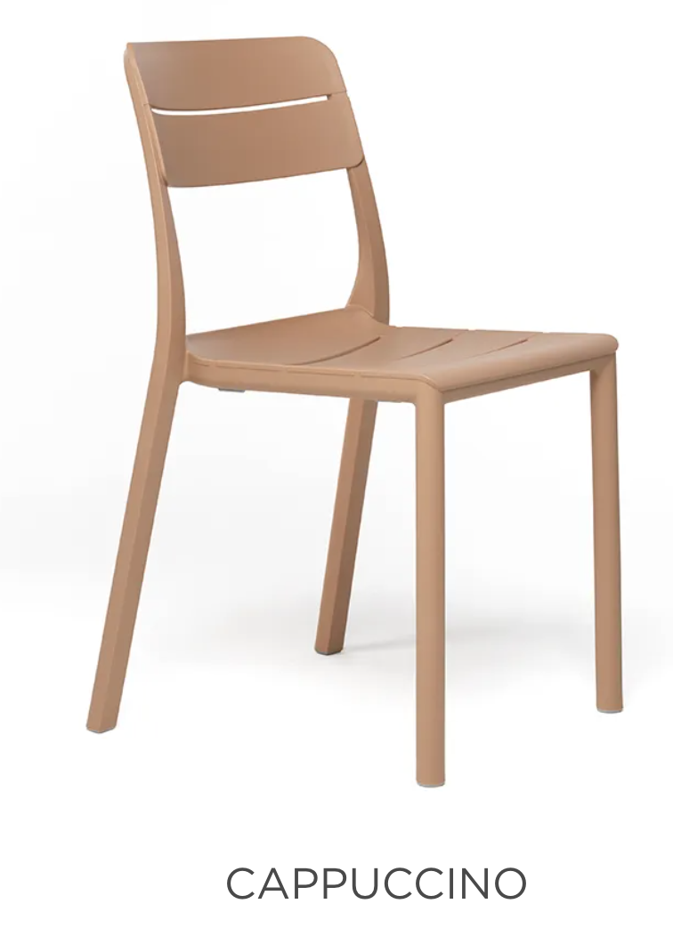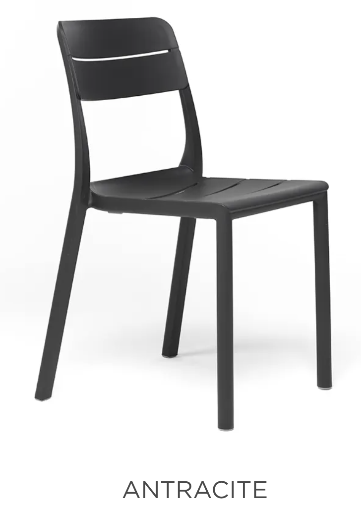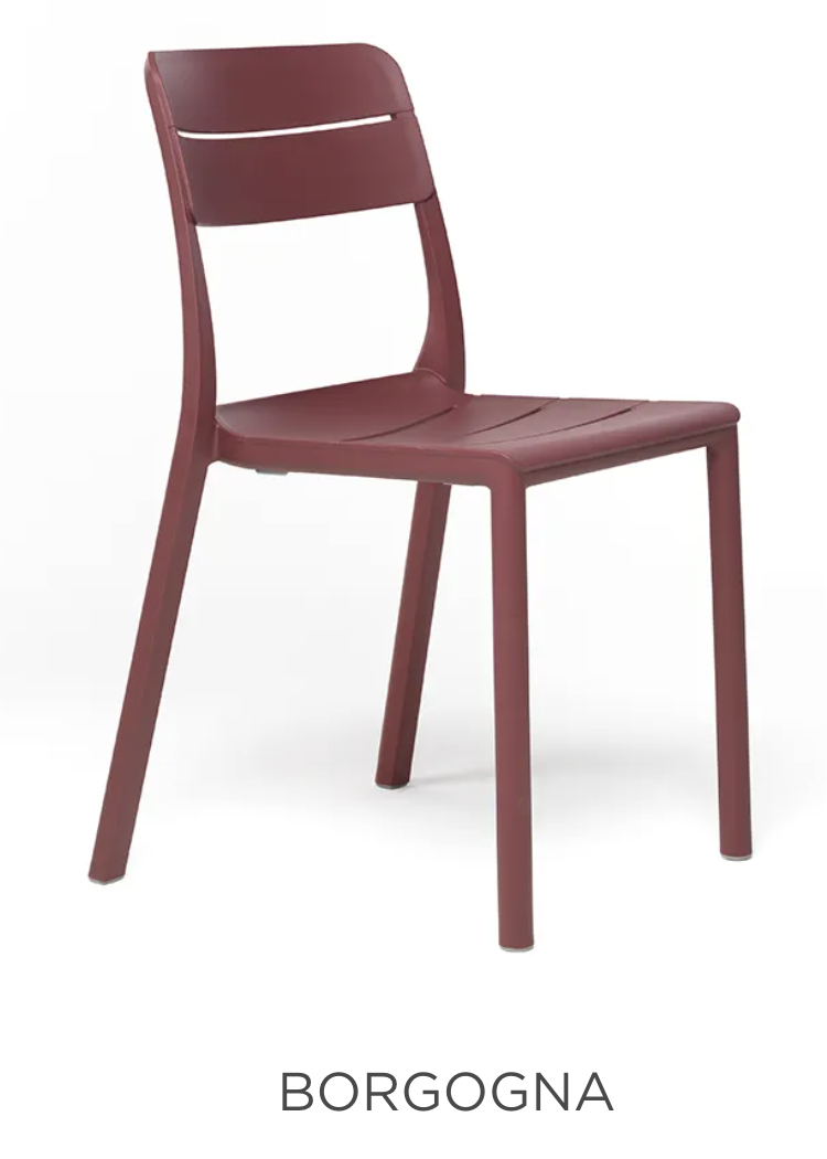 Lamas horizontales estilizadas, máximo confort y versatilidad caracterizan la silla sin reposabrazos Cassia, diseñada con medidas compactas para aprovechar al máximo y realzar los espacios pequeños..