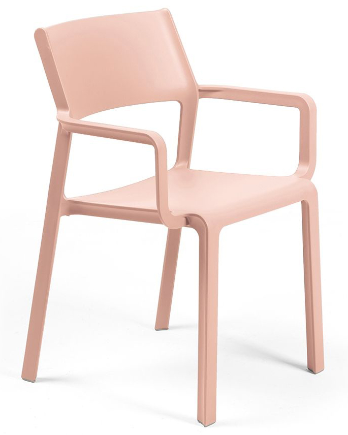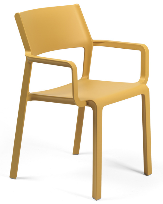 Silla monoblock con brazos. Material: polipropileno fiberglass tratado anti-UV y teñido en masa. Efecto mate. Con tapones antideslizantes. Resina reciclable.   Precio no incluye IVA (Precio + 16% )